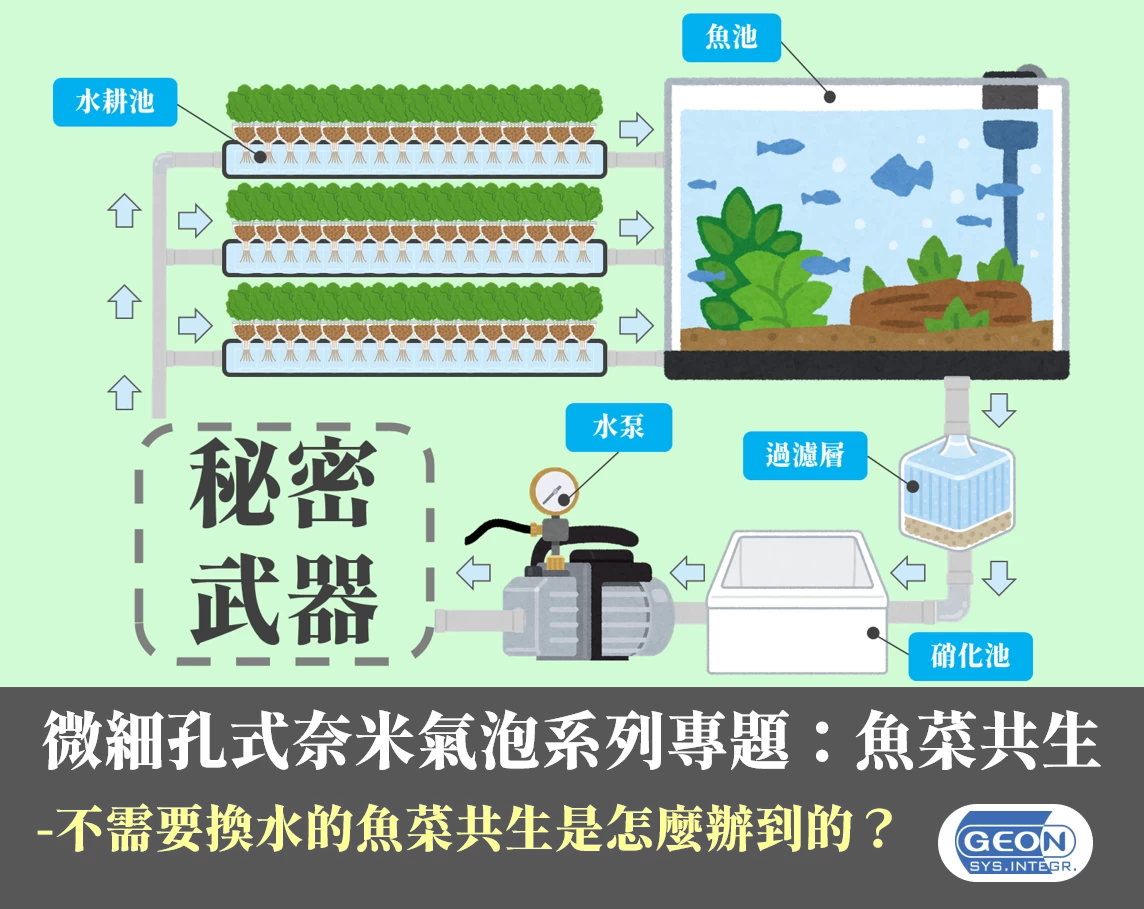 🐟🥬其中最重要的是什麼呢?就是硝化池!因為硝化池內的硝化菌肩負著分解有毒物質的任務。而要培養硝化菌所需要的高含氧環境,我們便不得不提到廣鴻科技最自豪的、能夠快速提高水中含氧量的【超微細孔式奈米氣泡增養裝置】。